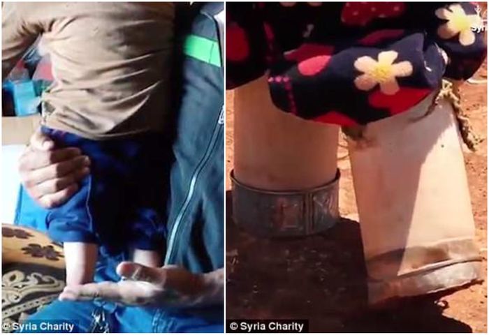 Sebuah video memilukan menunjukkan seorang gadis kecil menggunakan kaki palsu yang dibuat dari kaleng di kamp pengungsian di Suriah.