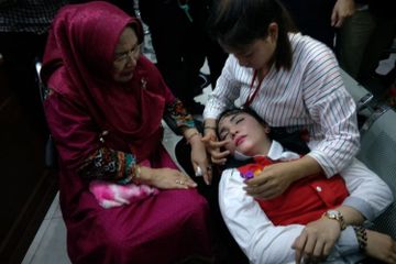 Roro Fitria dibangunkan dan ditenangkan dengan minyak kayu putih.