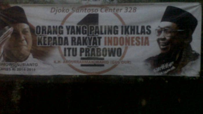 Anggota Gusdurian itu memotret spanduk Prabowo di Gresik, Jawa Timur, yang isinya bertuliskan Jaringan Gusdurian akan mendukung pasangan Prabowo Subianto-Hatta Rajasa.