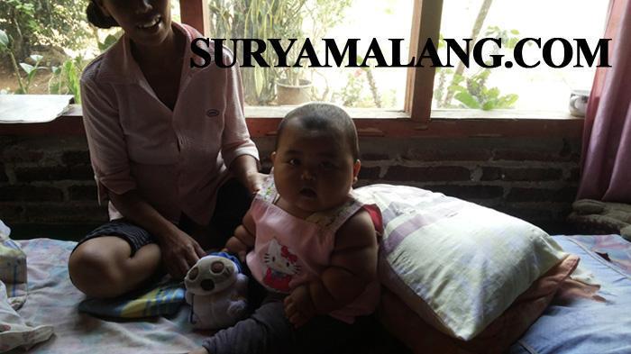 TRIBUNPEKANBARU.COM, DONOMULYO - Agustina (36), warga Desa/Kecamatan Donomulyo, Kabupaten Malang gamang dengan perkembangan anak ketiganya, Laila Fadila Rahma. Sebab baru usia enam bulan, bobot Laila sudah mencapai 16,5 kilogram.