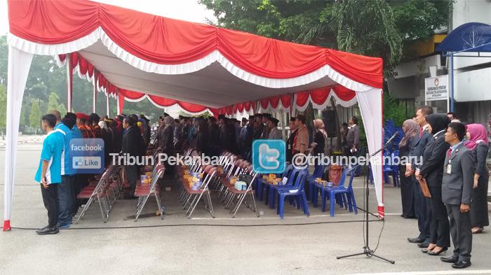 Pj Walikota Dumai, Arlizman Agus menjadi Inspektur pada upacara di Lapangan Eks Kantor Walikota Dumai, Jalan HR Soebrantas Dumai. Suasana tampak khidmat pada upacara tersebut. Walau Kabut Asap masih menyelimuti Dumai.