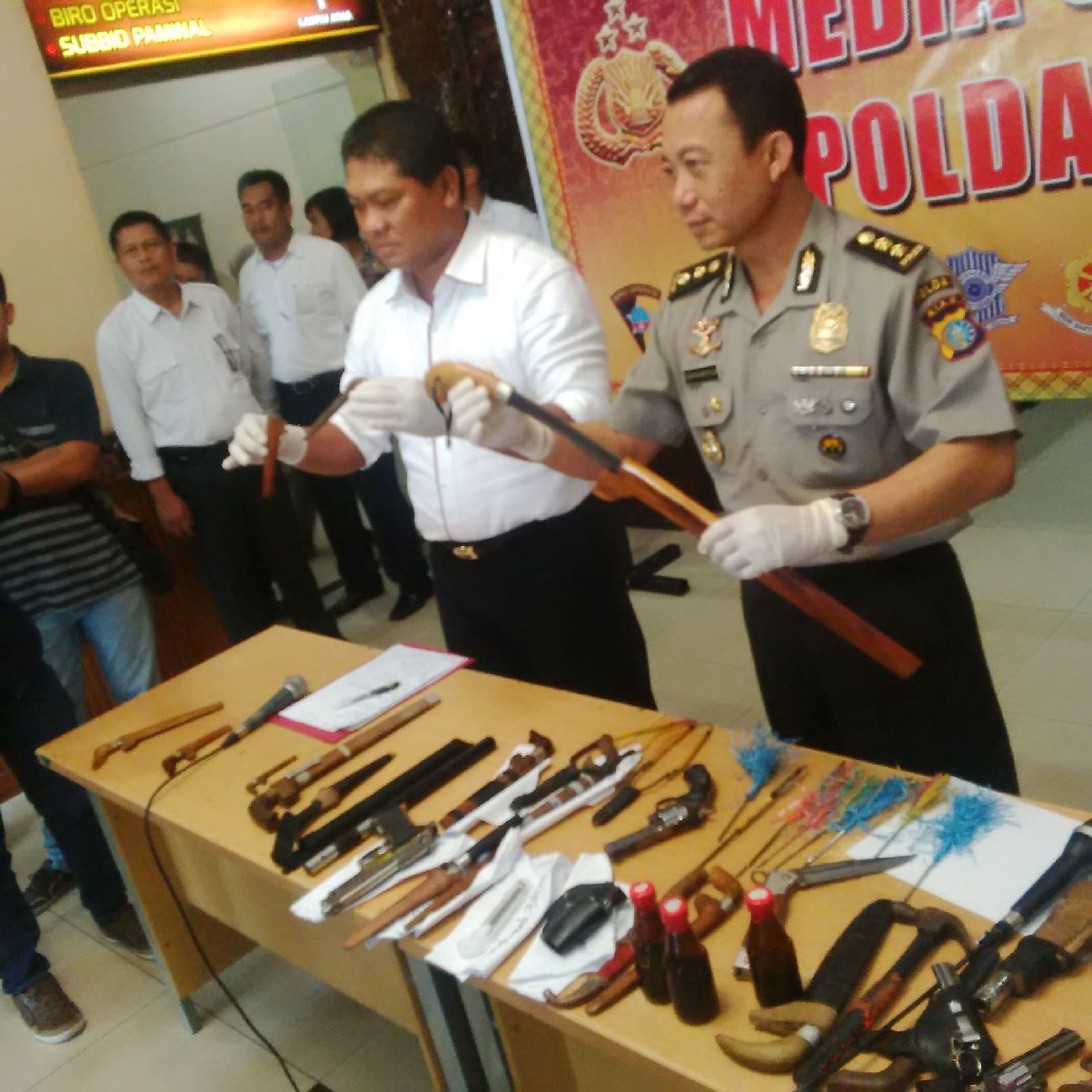 "Sajam, badik, belati, pisau, dan alat-alat berbahaya yang menyebabkan luka, Busur panah, ketapel, senjata Rakitan, senjata mainan untuk mancis, Keris, dan cuter. Dan dugaan cairan racun, kami perlu periksa laboratorium," ungkap Kapolresta Pekanbaru, Kombes Pol Arief Syarief Hidayat dalam ekspose yang digelar di Mapolda Riau. (*)