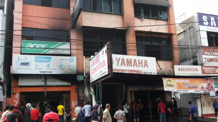 Api menghanguskan dua pintu Rumah Toko (Ruko) bengkel sepeda motor Sehati yang berada di Jalan Imam Munandar, Kecamatan Bukit Raya Pekabaru.