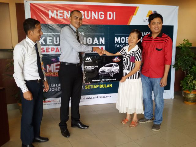 Pemenang hadiah utama yakni ibu Tju Lie Hoa, mendapatkan satu unit Daihatsu Great New Xenia. Undian mobil ini untuk pemenang periode 8 Februari sampai 11 Februari 2016. Hadiah diberikan secara simbolis oleh Kepala KCP Bank Mega Pangkalan Kerinci, Arrifki Desputra, dengan menyerahkan replika kunci mobil.