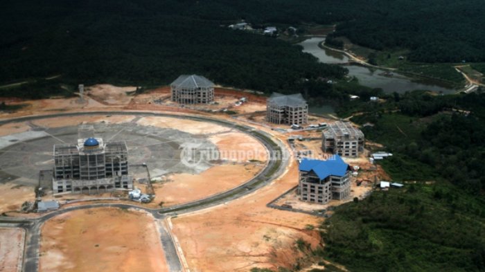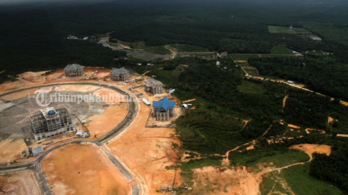 Bangunan Komplek Perkantoran Walikota Pekanbaru di Kecamatan Tenayan Raya dilihat dari atas, Selasa (28/2/2017). Proyek kawasan pembangunan tersebut kini tersendat akibat anggaran yang tidak memadai.