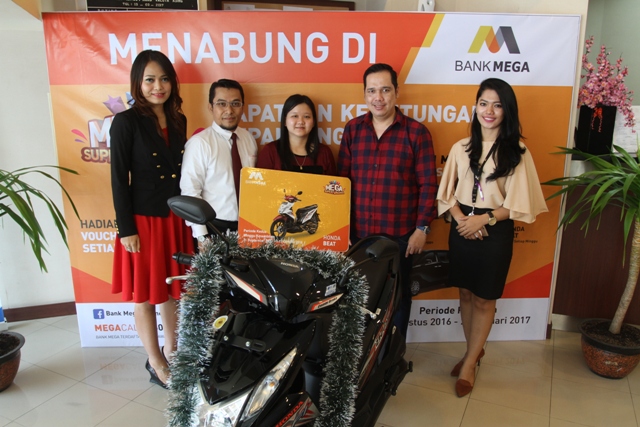 Hadiah itu diberikan langsung oleh Area Manager Bank Mega, Pekanbaru, Maruli Tua Tambunan di Kantor Bank Mega, KCP Harapan Raya, Pekanbaru, Senin (13/3/2017).