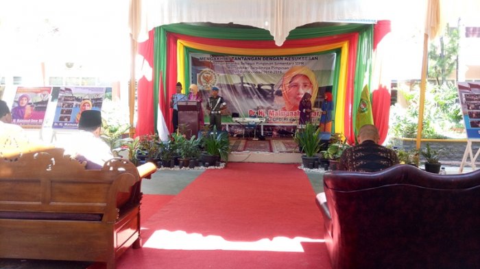TRIBUNPEKANBARU.COM, PEKANBARU - DR Hj Maimanah Umar, anggota DPD RI asal provinsi Riau luncurkan buku ke empatnya berjudul Mengakhiri Tantangan Dengan Kesuksesan. Peluncuran buku ini dilakukan di SMK Masmur Pekanbaru Jalan KH Ahmad Dahlan, Sabtu (13/5/2017).