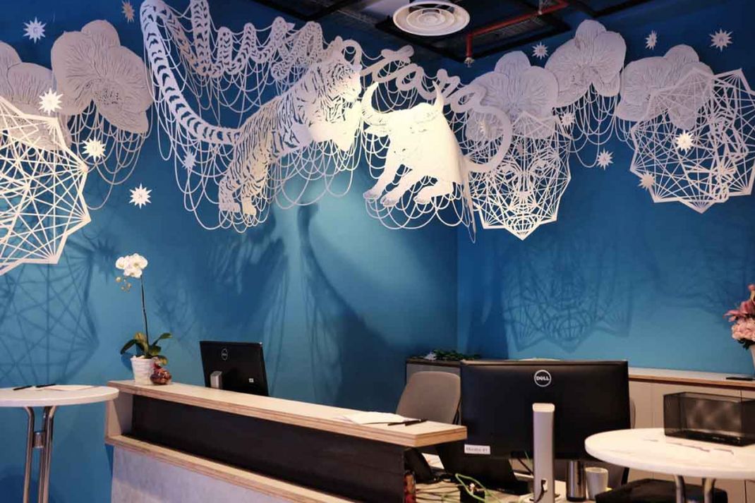 Hiasan-hiasan tersebut berupa mural karya Indie Guerilla yang terinspirasi dari warna dan corak suku Asmat. Ada pula hiasan mural karya Agung Prabowo yang menceritakan tentang perdamaian.
