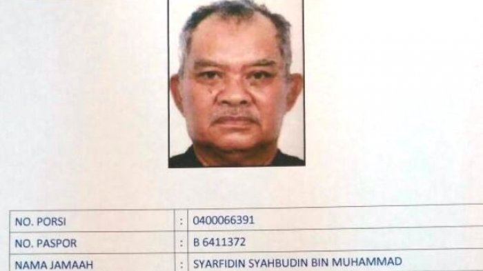 Berdasaarkan data yang diterima oleh Tribunpekanbaru.com dari Kanwil Kemenag Riau, jamaah yang wafat tersebut memiliki nama lengkap Syarfidin Syahbudin Bin Muhammad berusia 65 tahun dengan alamat Jalan Lingkungan RT 01/RW 09 Batang Peranap Kabupaten Indragiri Hulu.