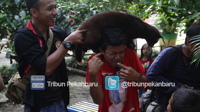 Seperti yang lakukan, Minggu (3/9/2017), aksi seekor musang peliharaan anggota Musang Lovers Pelanbaru membuat pengunjung Taman Kota merasa gemes.