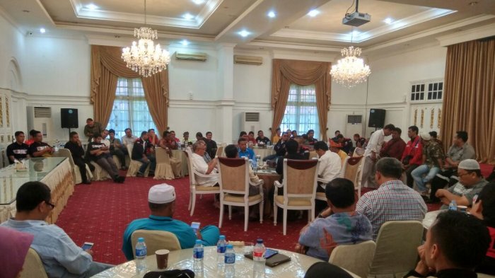 TRIBUNPEKANBARU.COM, PEKANBARU - Ratusan Karyawan dari PT Riau Andalan Pulp and Paper (RAPP) Minggu (15/10/2017) melakukan pertemuan dengan Gubernur Riau Arsyadjuliandi Rachman di kediaman Gubernur Jalan Diponegoro.