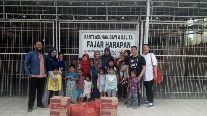 TRIBUN PEKANBARU.COM, PEKANBARU - Alumni Sekolah Menengah Pertama (SMP) Negeri 4 tahun 1999 Pekanbaru kelas III 3, gelar bakti sosial dengan berkunjung ke panti asuhan Fajar Harapan Jalan Mustafa Yatim Pekanbaru, Minggu (22/10/2017)