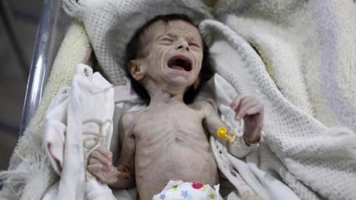 Foto seorang bayi di Suriah menimbulkan rasa iba masyarakat dunia. Memperlihatkan tubuh bayi yang kurus kering menyedihkan