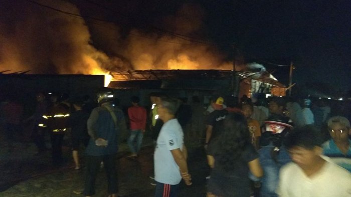 TRIBUNPEKANBARU.COM, PEKANBARU- Kebakaran hebat terjadi di gudang fiber di Jalan Serai Kecamatan Marpoyan Damai Pekanbaru, Kamis (26/10/2017) malam.