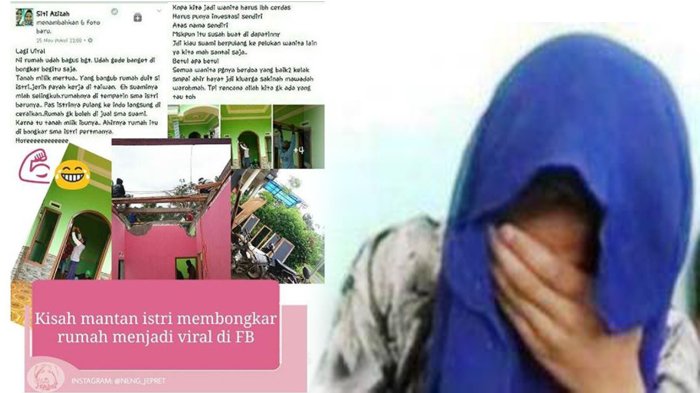 untuk menjualnya karena rumah itu dibangun diatas tanah peninggalan ibu si suami, Tak kehabisan akal, sang mantan istripun membongkar rumah tersebut hanya menyisakan tanah," tulisnya.
