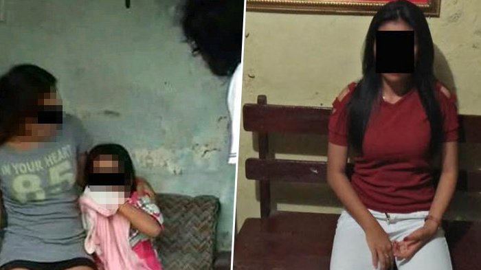 Dengan wajah yang masih lugu, SA duduk bersama mucikari yang menjualnya.