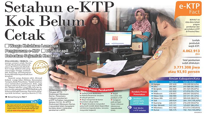 TRIBUNPEKANBARU.COM, PEKANBARU - Lamanya proses cetak Kartu Tanda Penduduk elektronik atau e-KTP banyak dikeluhkan warga.