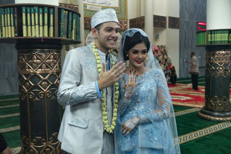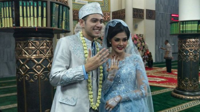TRIBUNPEKANBARU.COM - Artis peran Rifky Balweel menikah denganBiby Alraen di Masjid Darul Ilmi, PTIK, Jakarta Selatan, Minggu (7/1/2018). Ia mengucapkan ijab kabul dalam bahasa Arab.