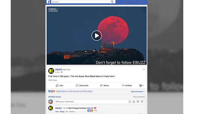 TRIBUNPEKANBARU.COM - Ketika Anda memasukkan kata kunci “ supermoon” di kolom pencari Facebook pada Rabu (31/1/2018) malam kemarin, video pertama yang muncul adalah siaran langsung dari akun bertajuk “EBUZZ”.