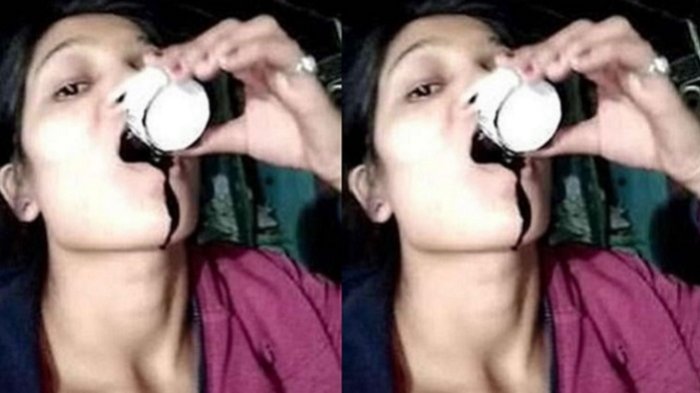 TRIBUNPEKANBARU.COM - Seorang wanita di India merekam dirinya saat sedang menenggak minuman beracun.