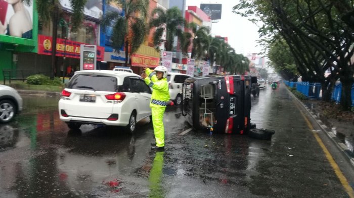 Kecelakaan Tunggal, Begini Kronologis Mobil Terbalik di Dekat Mal Pekanbaru