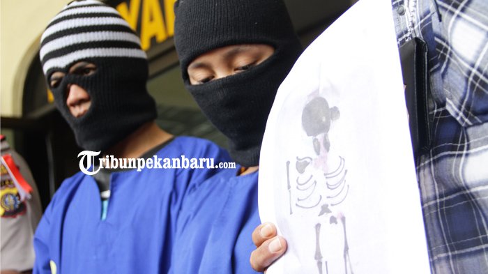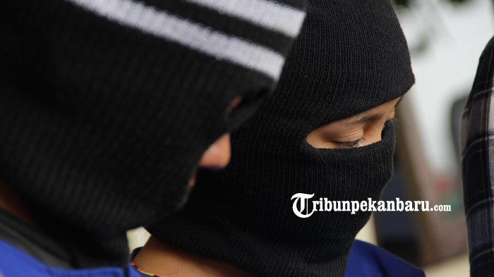 TRIBUNPEKANBARU.COM - Dua tersangka aborsi RR (25) dan KRA (20) dihadirkan saat ekspose di Polsek Tenayan Raya, Pekanbaru, Rabu (7/3/2018).