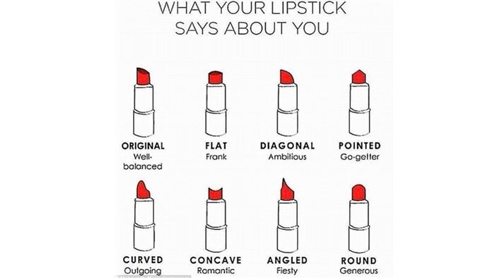 Satu hal yang juga bisa menggambarkan kepribadian seorang wanita ialah bentuk lipstik yang telah digunakannya lho.