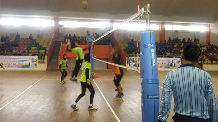 Tim bola voli putri pelajar Kuansing, Jumat (13/4) berhasil meraih kemenangan melawan Kampar. Sekaligus juara pool Y