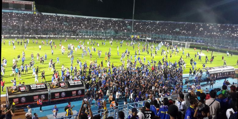 TRIBUNPEKANBARU.COM - Kericuhan suporter Aremania dalam pertandingan pekan keempat Liga 1 antara Arema FC melawan Persib Bandung di Stadion Kanjuruhan, Kabupaten Malang, pada Minggu (15/4/2018) malam menimbulkan banyak korban.