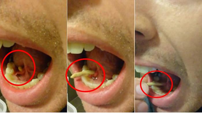 Ia merekam 30 detik kejadian yang bermula saat dirinya membuka mulut dan mengangkat lidah. Sesuatu berwarna putih nanah menyembul dari bawah lidah.