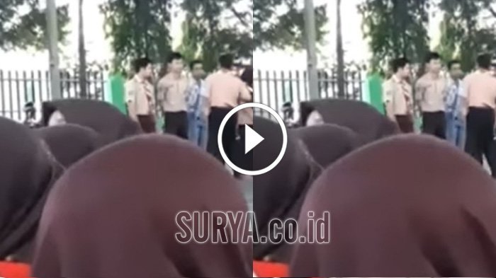 Dalam video tersebut, tiga siswa yang mengenakan seragam Pramuka ditampar berurutan oleh seorang pria yang juga memakai seragam yang sama.