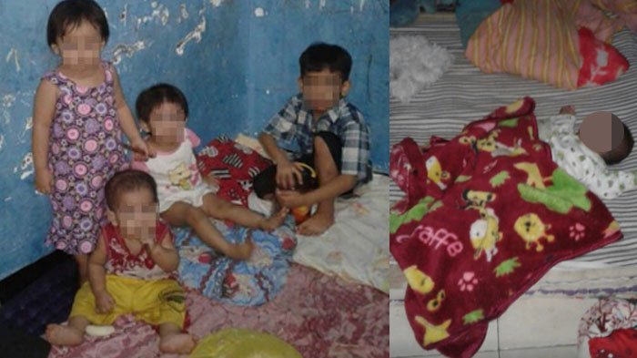 Lima balita yang masing-masing berusia 5 tahun, 3 tahun, 2 tahun, 14 bulan, dan satu bulan ditemukan menangis di kamar kos