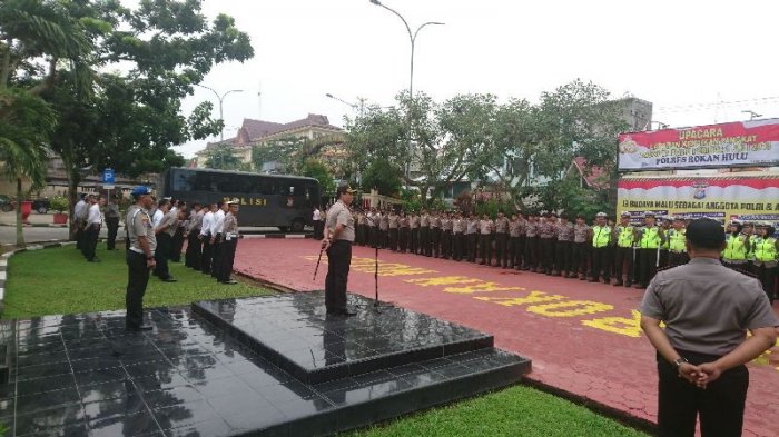 Kenaikan pangkat dilakukan melalui Upacara Korp Raport Kenaikan Pangkat Anggota Polri Periode 1 Juli 2018 dipimpin Kapolres Rohul AKBP Muhammad Hasyim Risahondua S.Ik, M.Si, di halaman Mapolres di Jalan Diponegoro, Pasirpangaraian, Senin pagi (2/7/2018).