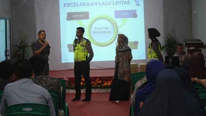 TRIBUNPEKANBARU.COM, PEKANBARU- Sat Lantas Polresta Pekanbaru melakukan sosialisasikan tertib berlalu lintas di SMP Islam As Shofa Pekanbaru, Jumat (20/7/2018).