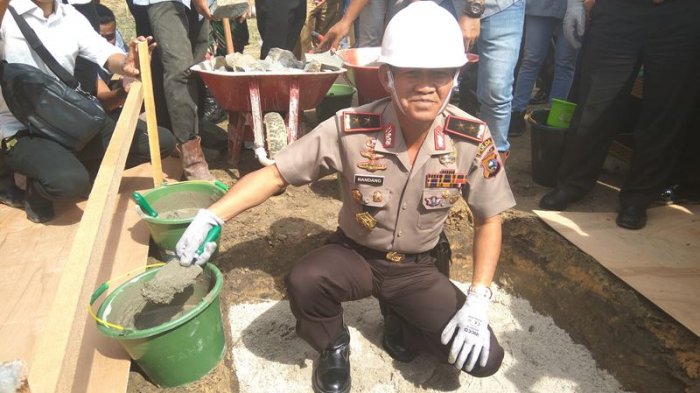 "Tidak bisa pakai cara biasa, pakai cara luarbiasa. Kalau perlu 24 jam pakai tiga regu mengerjakan. Budgetnya Rp 114 Miliar. Bagunannya banyak," sebut Kapolda usai peletakan batu pertama pembangunan SPN, Selasa (31/7/2018) di Desa Sungai Pinang, Kecamatan Tambang, Kabupaten Kampar.