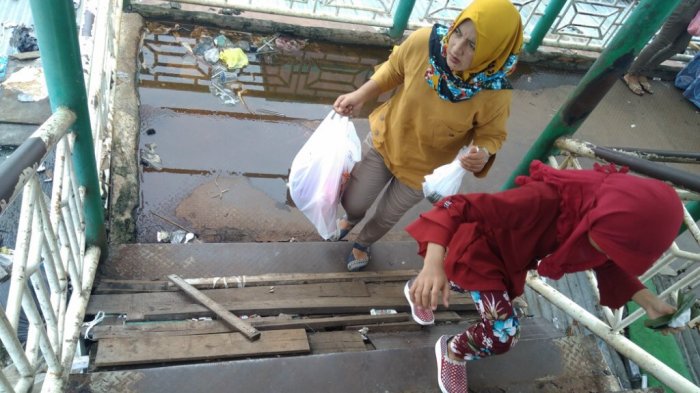 TRIBUNPEKANBARU.COM, PEKANBARU - Kondisi jembatan penyeberangan orang (JPO), di depan Pasar Sukaramai sudah banyak dikeluhkan masyarakat.