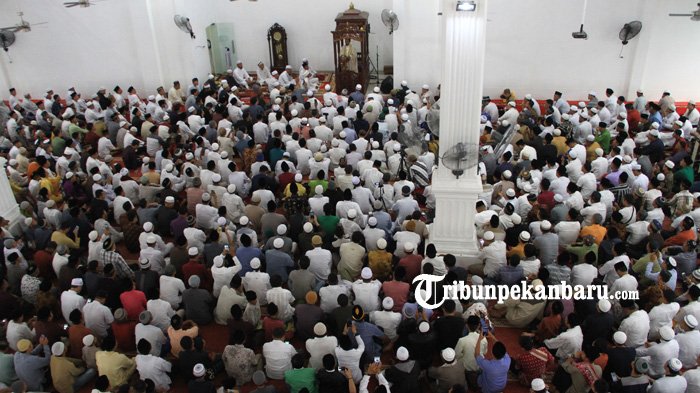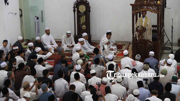 TRIBUNPEKANBARU.COM - Ustaz Abdul Somad menjadi khatib salat Idul Adha di Mesjid Rhaudatus Shalihin di Jalan Bukit Barisan, Rabu (22/8/2018).