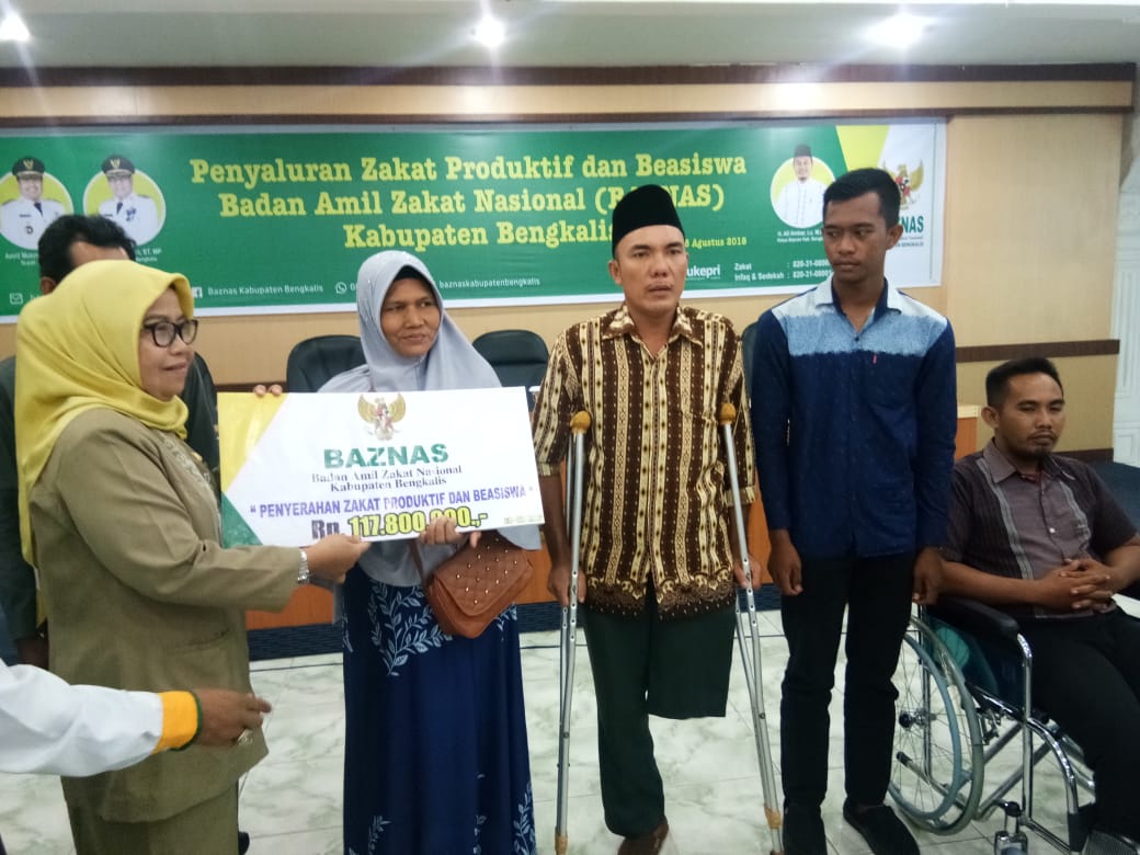 Menurut Kepala Baznas Bengkalis Ali Ambar, zakat berbentuk beasiswa diserahkan kepada tiga puluh delapan orang pelajar. Sedangkat zakat produktif diberikan kepada 35 orang penerima sementara zakat konsumtif sebanyak 14 orang.
