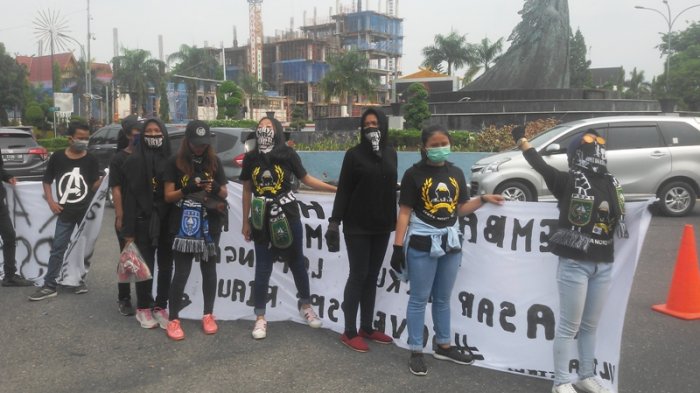 Ratusan suporter tim askar bertuah PSPS yang tergabung dalam Curva Nord 1955 Pekanbaru, Senin (17/9/2018) melakukan aksi damai.