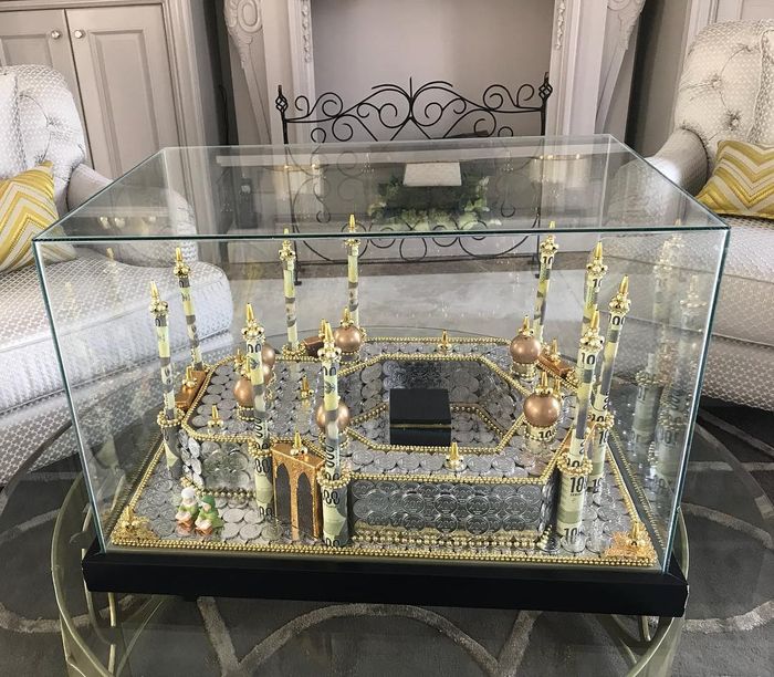 Tidak hanya itu, rumah Andre ini dilengkapi dengan replika Ka'bah cantik yang dibuat dari uang logam dan uang kertas.