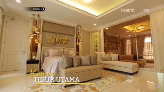 Kamar tidur utama di rumah Andre Taulany memiliki dua bagian, ada ruangan yang berisi tempat tidur dan ada yang berisi sofa.