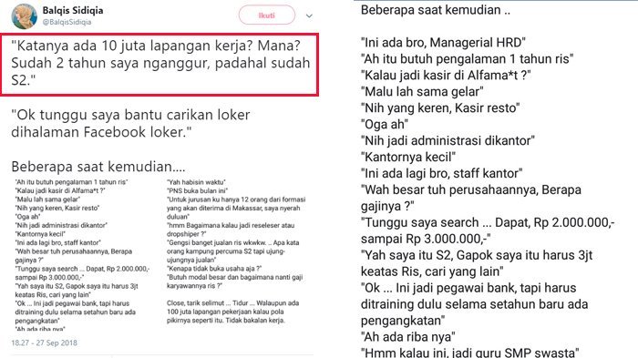 Belakangan, sebuah cuitan soal lapangan pekerjaan viral di media sosial.
