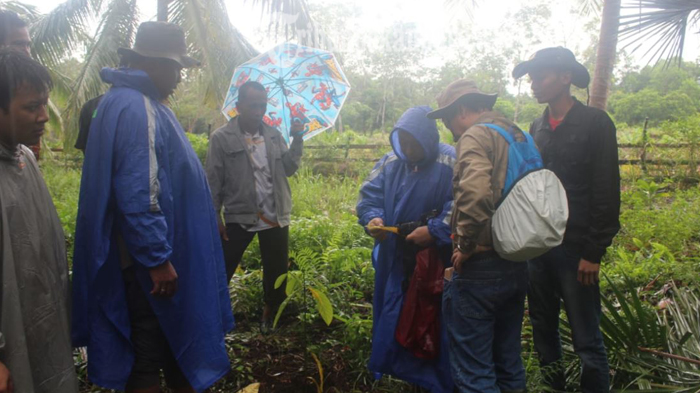 Meskipun diguyur hujan gerimis, tidak menyurutkan semangat para peneliti gambut dan masyarakat.