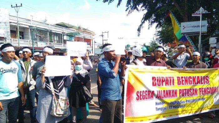 Puluhan Eks Karyawan PT Bumi Laksamana Jaya (BLJ) mendatangi kantor Bupati Bengkalis.