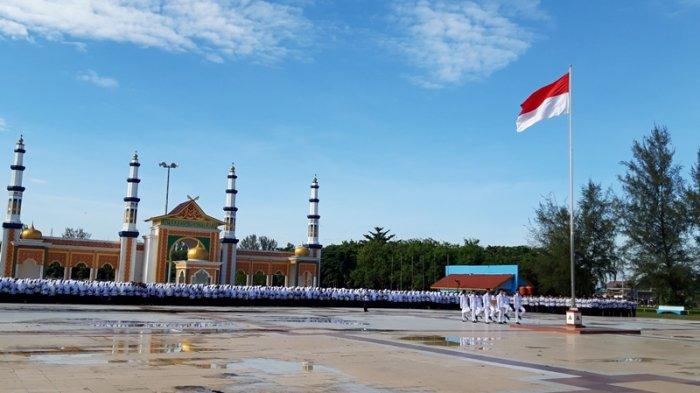 Pantauan Tribun, para guru yang hadir mengenakan batik PGRI upacara ini.