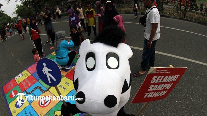 Sejumlah anak mengikuti rangkaian sosialisasi sadar lalu lintas sejak dini di kawasan hari bebas kendaraan bermotor (HBKB) Jalan Sudirman Pekanbaru, Minggu (10/2/2019). (TRIBUN PEKANBARU/THEO RIZKY)