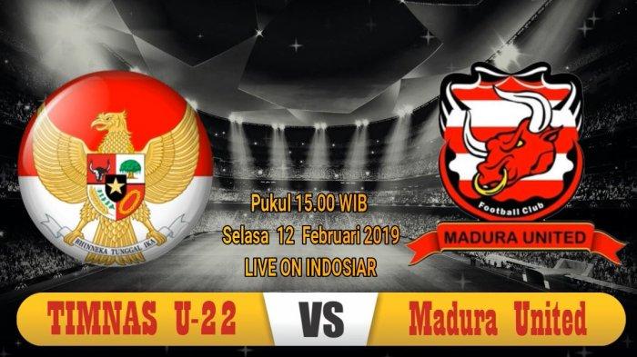 LIVE Streaming U-22 vs Madura United akan disajikan Selasa (12/2/2019) sore Pukul 15.00 WIB di Indosiar