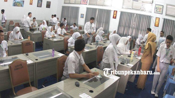 Terdapat sebanyak 380 murid yang mengikuti UNBK di sekolah tersebut dengan dua sesi ujian dalam satu hari. (TRIBUN PEKANBARU/THEO RIZKY)