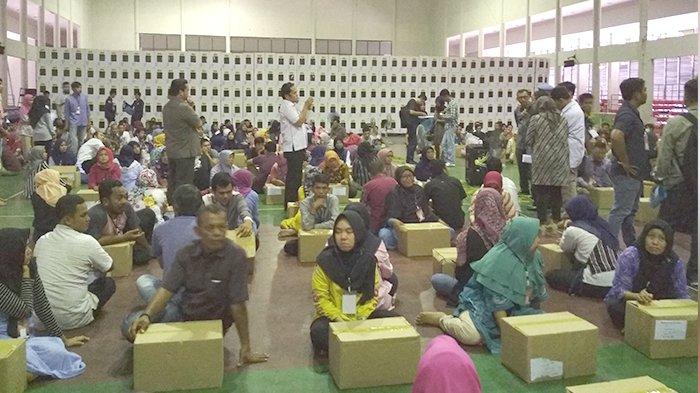 KPU Pekanbaru menyimpan surat suara dan logistik Pemilu 2019 di Venue Takraw, Purna MTQ Pekanbaru.
