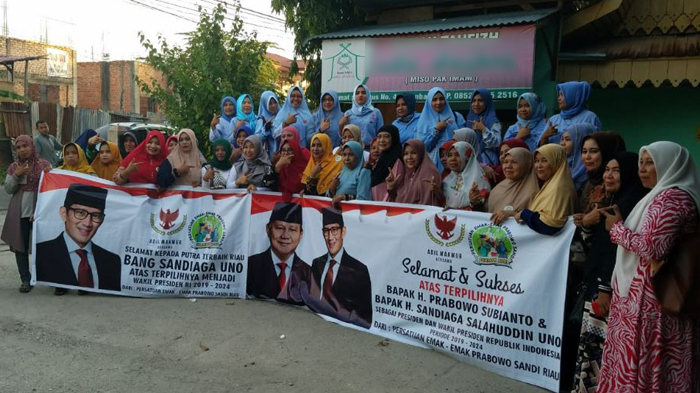 Emak Militan Riau akan memasang spanduk ucapan selamat atas terpilihnya Prabowo Subianto dan Sandiaga Uno sebagai Presiden dan Wakil Presiden